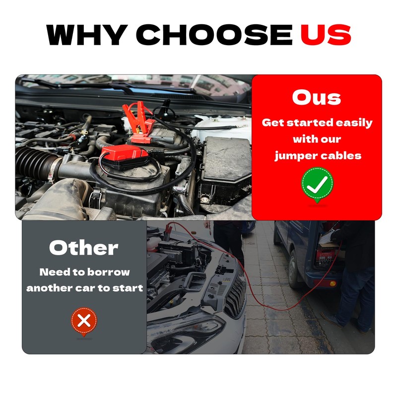 • Safety Precautions: Not Reverse The Operation Sequence Of The Jump Starter. Please Be Careful When Using This Product, This Item Can Not Be Overloaded, Check Your Device Power Before Using, Please. Do Remove The Product From The Vehicle Within 30 Seconds After The Vehicle Is Started, Or It May Cause Security Incidents. Note: Always Check If Your Power Bank Is Capable Of Supporting Your Car. Keep In Mind, The Jump Starter Doesn’T Convert Voltage/ Step-Down Voltage!