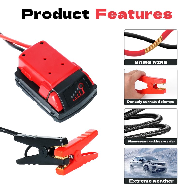 • 2025 Newly Upgraded Jump Starter:IIXWUQ Jump starter cable is exclusively designed for seamless compatibility with Milwaukee batteries(Compatible with all Milwaukee batteries models). It's a breeze to use—simply align the power adapter into the groove, push the converter, and ensure it's locked onto the battery. (Battery not included)