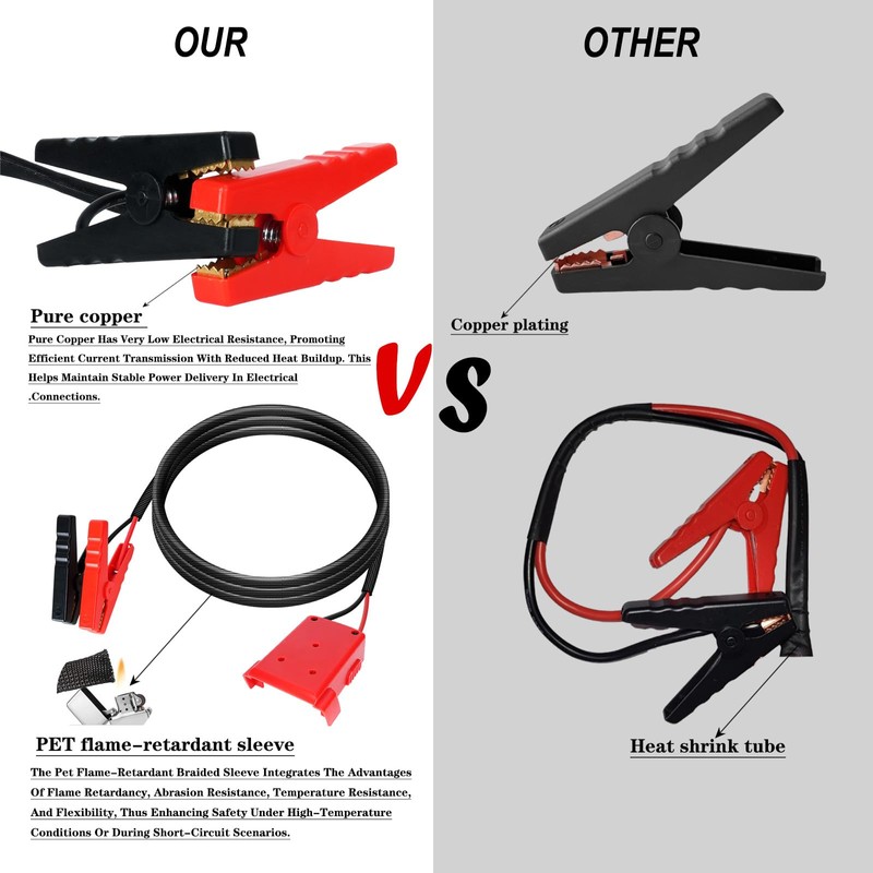 • Instructions For Use: ①Connect The Red Battery Clamp Of The Jumper Cable To The Positive Terminal (+) Of The Vehicle, And The Black Clamp To The Negative Terminal (-). ②Insert The Battery Into The Adapter And Ensure It Is Securely Locked. ③Attempt To Start The Car. ④Disconnect The Connection Between The Car Battery And Your Tool Battery After Successfully Starting The Car.