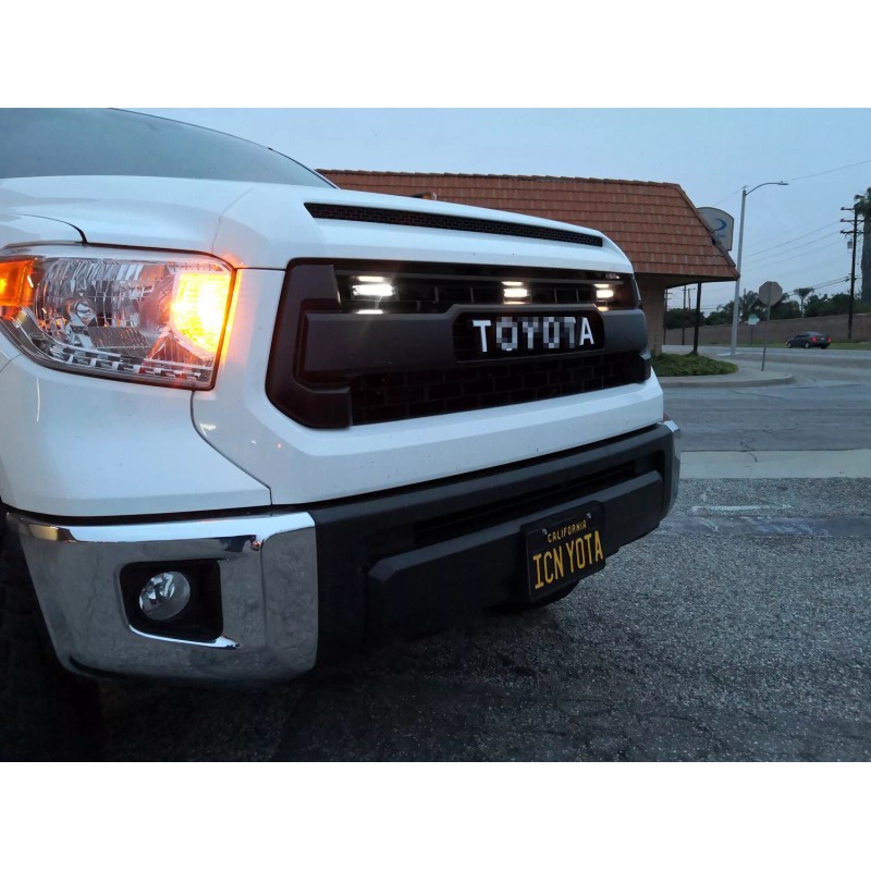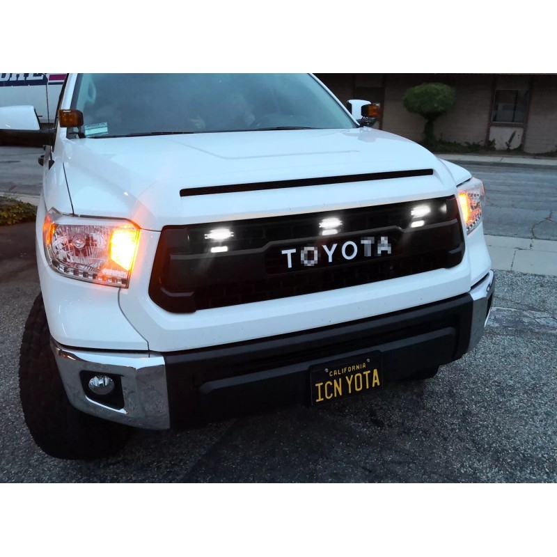 - Interchange Part Number: Black-Out Smoked Lens Xenon White Full LED Grille Lights Kit, Center Set 3-Piece Marker Lamps w/Wiring &, Compatible with 2014-2021 Toyota Tundra w/TRD Pro Grill,, Hardware