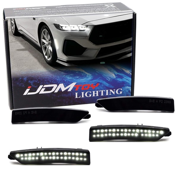 iJDMTOY 4pc Set Black-Out Smoked Lens Xenon White Full LED Dotted Front & Rear Side Marker Light Kit Compatible With Ford 2024-up Mustang (S650)