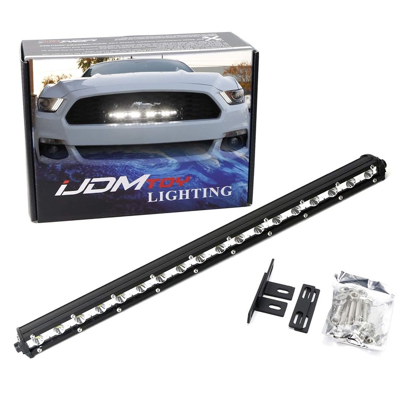iJDMTOY Behind Grille Mount 20-Inch LED Ultra Slim Light Bar Compatible with 2015-17 Ford Mustang, Includes (1) 54W High Power LED Lightbar, Inside Grill Mounting Brackets & On/Off Switch Wiring Kit