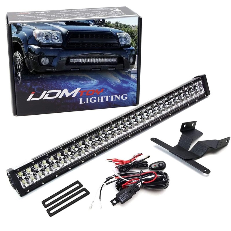 iJDMTOY Lower Grille 30-Inch LED Light Bar Kit Compatible with 2003-2009 Toyota 4Runner, Includes 180W High Power LED Lightbar, Lower Bumper Opening Mounting Brackets & On/Off Switch Wiring Kit