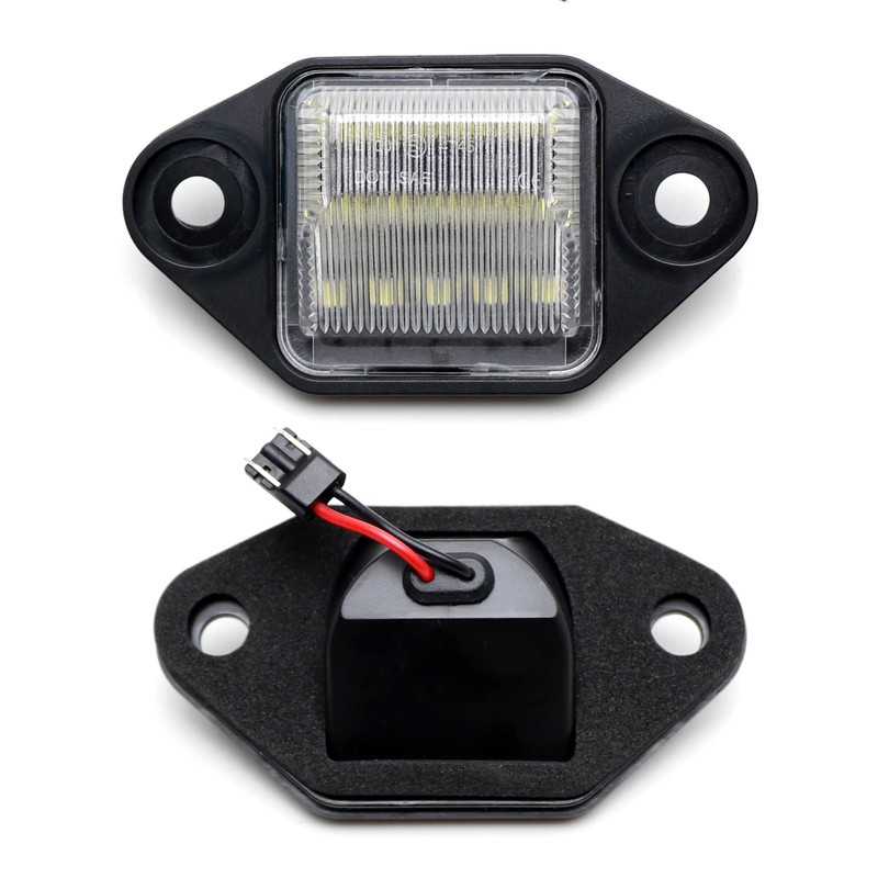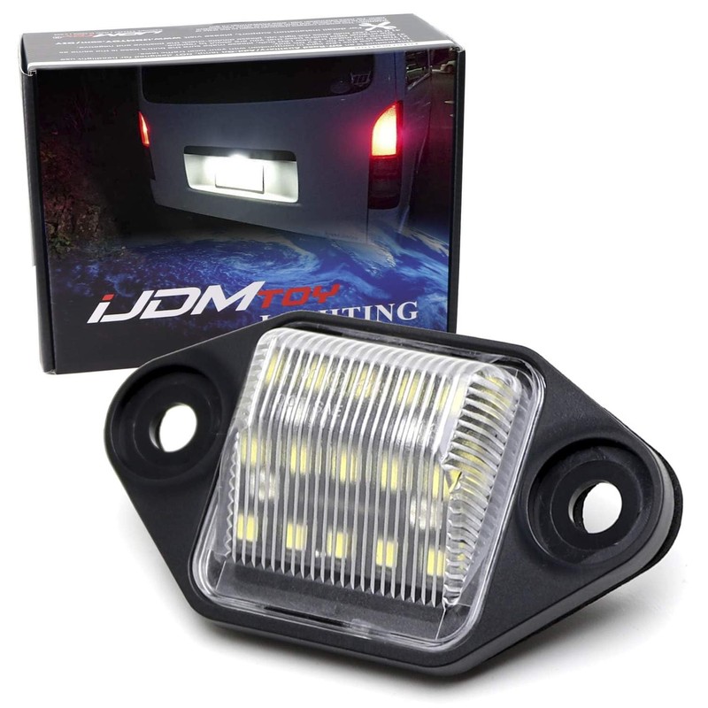 - Direct fit replacement full LED license plate light assembly featuring super bright xenon white LED diodes with built-in CAN-bus error free decoder, ensuring no bulb out warning post-upgrade