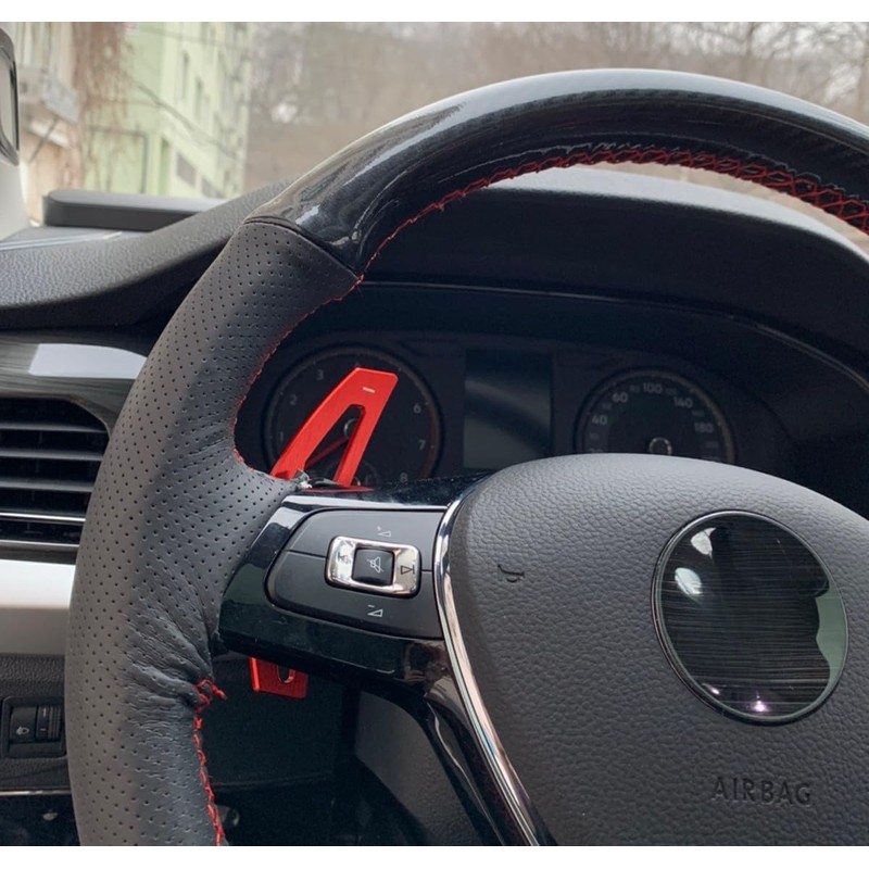 iJDMTOY Red Aluminum Large Paddle Extensions w/Plastic Base Compatible with Volkswagen: 2009-2014 MK6 Golf/GTI, 2008-2017 CC, 2011-2017 Jetta, etc