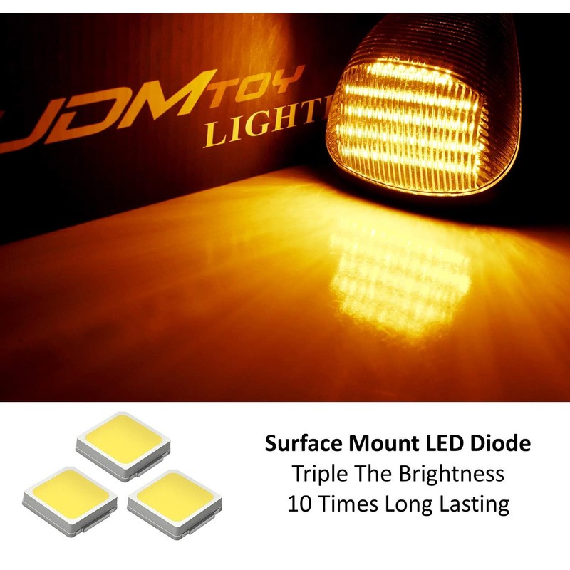 iJDMTOY Semi-Clear Lens Amber Yellow Full LED Cab Roof Marker Lamps Replacement Compatible With Ford 1999-2016 F250 F350 F450, Also Universal Fit For Other Trucks