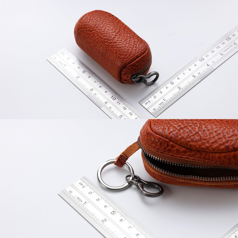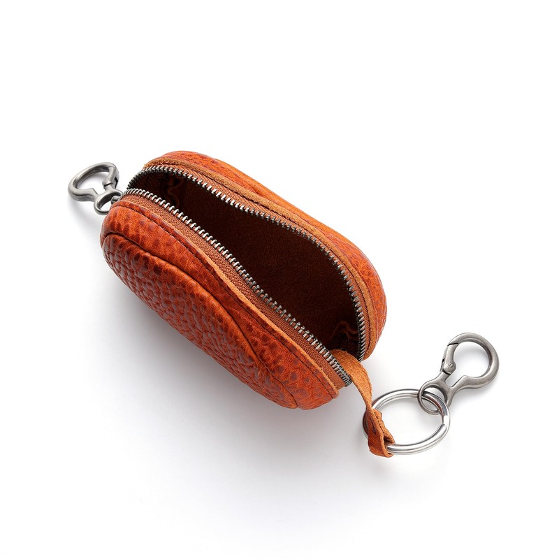 IJUN Nume Leather Key Case, Genuine Leather with Key Ring, Zipper, Soft, Italy, Oiled Vegetable Tanned Leather, orange, retro