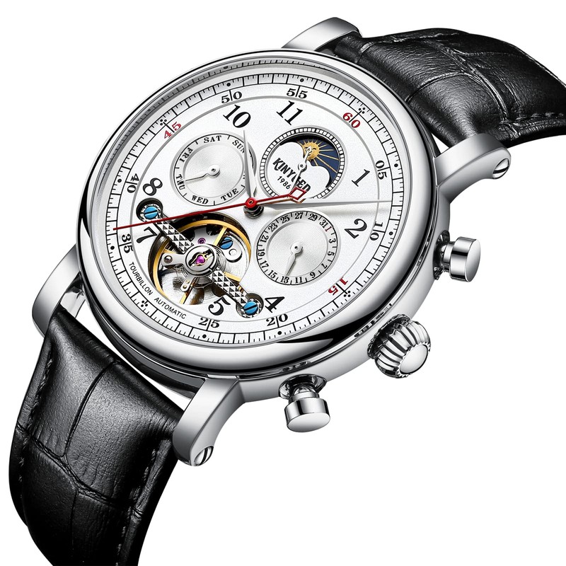 - 【SMALL BUDY, BUT VERSATILE】Quality brand original automatic tourbillon style relojes de hombre(watch); without a battery; calendar,waterproof, week,moon phase function.