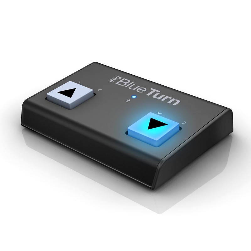 The two buttons on iRig BlueTurn support Bluetooth LE transmit a standard HID (Human Interface Device) message, allowing you to turn pages and slide through music management apps such as iKlip Stage, IK's and document viewer apps such as Adobe Reader.