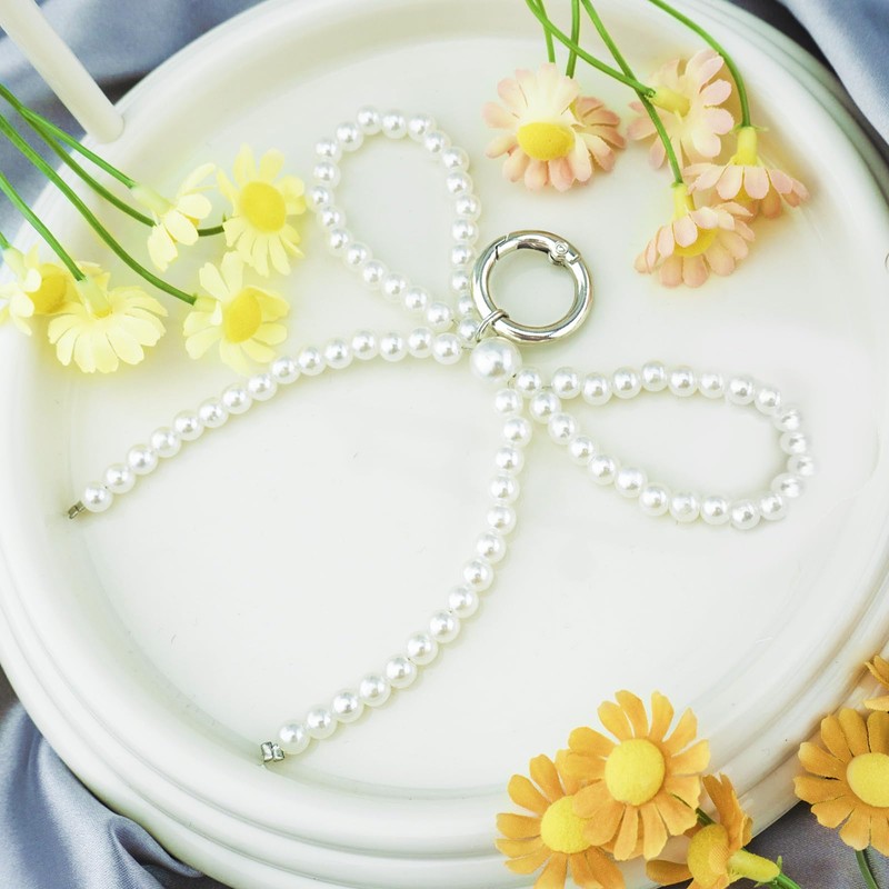 - High Quality Material -- It is made of artificial pearls and alloy keychains, safe, skin friendly, durable, drop resistant, and not easily damaged. Size: about 3.9 * 3.9 Inch.