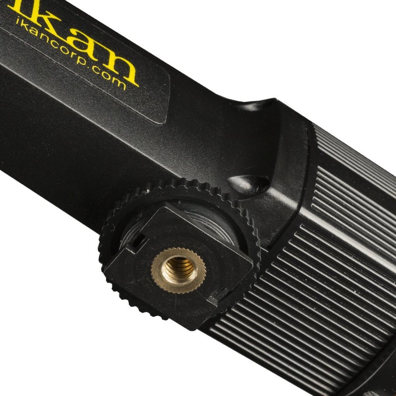ikan's Micro Spot On-Camera Light is a lightweight, cool-to-the touch, daylight-balanced, on-camera LED about the size of a small flashlight. The front of the light incorporates a lens system that creates a 30 Degree beam angle providing a directional light well suited for on-camera use or also as a kicker light. The unit features a discrete on/off switch and is dimmable from 100 to 10% on using an integrated thumb wheel on the side. The shoe mount enables you to slide the light onto the top of a camera or mount it to any ¼-inch, 20-thread arm using the ¼-20 receiver at the bottom of the shoe. The internal lithium-ion battery is good for 90 to 120 minutes and can be recharged using the 5V mini-USB cable.