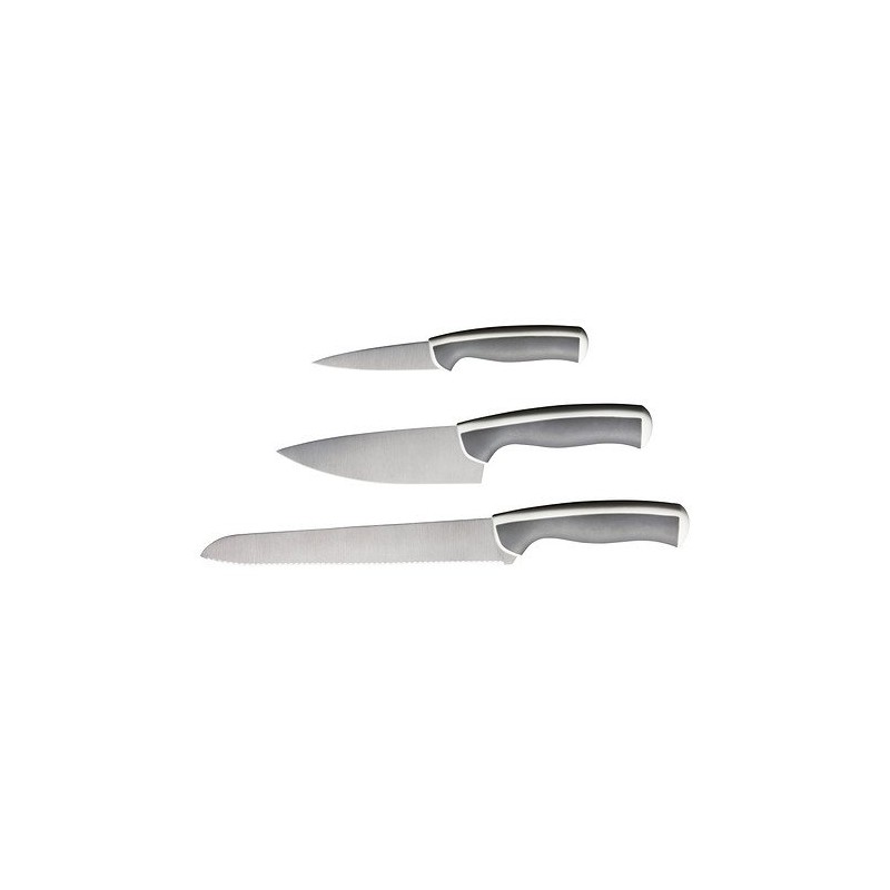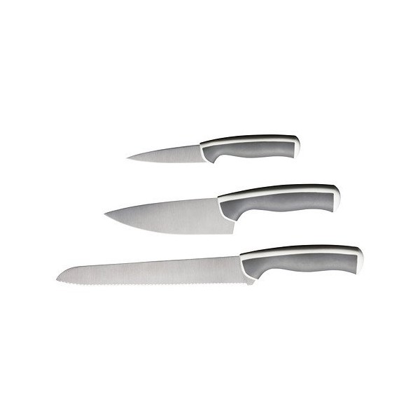 - 3 piece knife set in gray and white