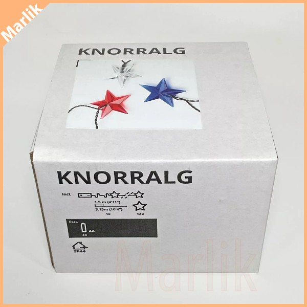 IKEA KNORRALG LED String Light With 12 Lights/Stars, Battery Operated (excl) NEW
