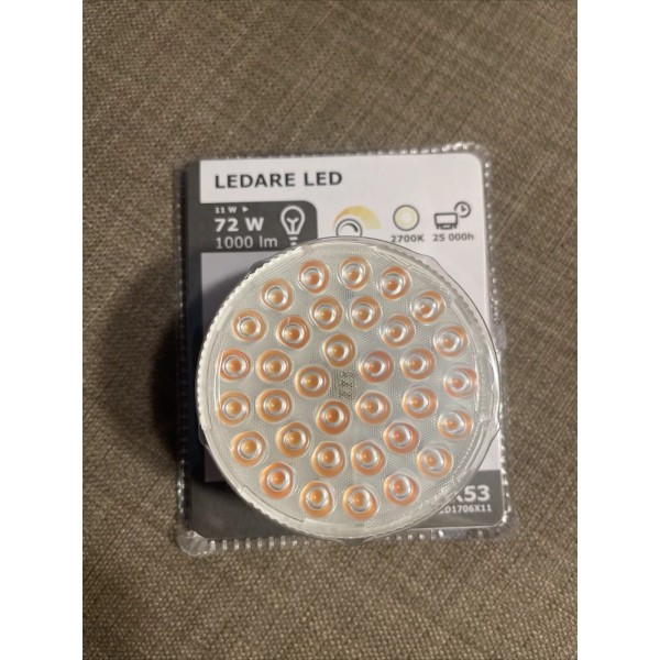 The Ikea LEDARE model is a LED bulb that is easy to install and use, with a GX53 bulb shape code. It has a warm glow of 2700K and an adjustable beam, making it perfect for any home or garden lighting needs. With 1000 lumens and a bulb wattage of 11W, this LED bulb is an excellent choice for anyone looking for an energy-efficient and long-lasting lighting solution.