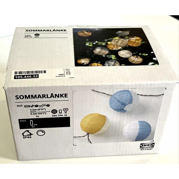 IKEA New IKEA SOMMARLANKE Led String Light With 24 Lights 105.446.33 Blue Yellow