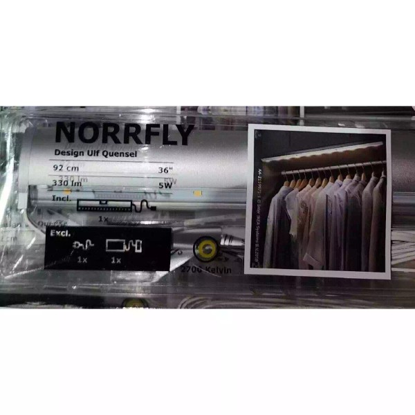 Spruce up your closet or indoor space with the IKEA NORRFLY 36" LED light strip. This lighting strip comes in a sleek aluminum color and boasts 330 lumens, perfect for creating a cozy and inviting atmosphere. With its dimmable feature and light sensor type, you can easily adjust the lighting and create the perfect ambiance for any occasion.
