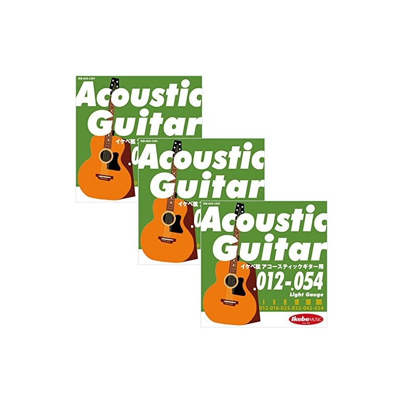 ikebe Original Acoustic Guitar Strings "ikebe Strings for Acoustic Guitar 012 – 054 " [Light Gauge/IKB – AGS – 1254] X 3 Set