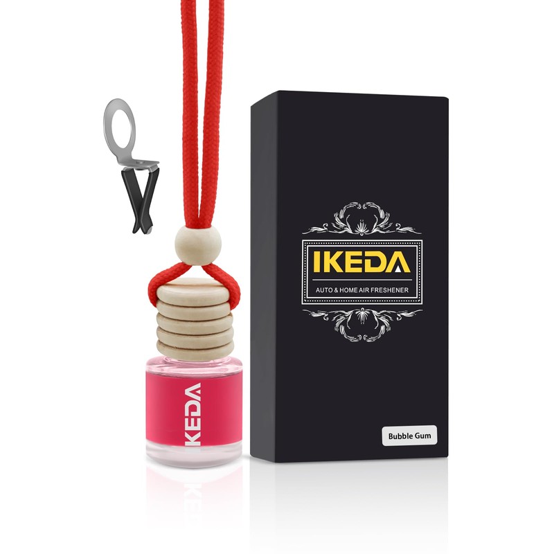 Ikeda Car Scent: Hanging Car Air Freshener | 10ml Round Hanging Car Decoration | With Vent Clip | For Car Home | 1 Piece (10ml Round x 1 Piece, Bubblegum)