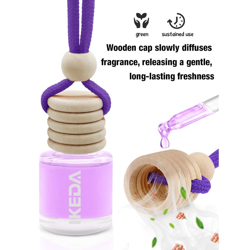 - Easy to use: the car fragrance pendant is very easy: unscrew the wooden closure, remove the plug, screw the cap back on and hang the pendant in the desired place. The air freshener exudes its pleasant fragrance.