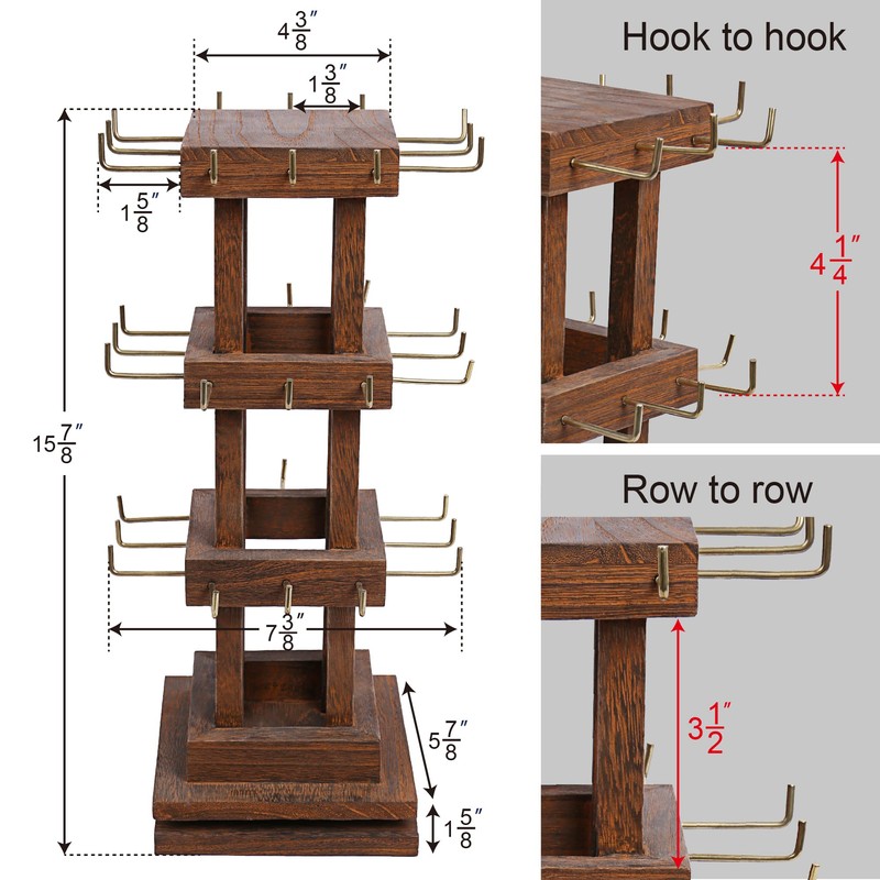 ☑ Overall Dimensions: 7 3/8"W X 7 3/8"D X 15 7/8"H, each hook to hook: 1 3/8"W, 1 bar fits perfect for 3 earring cards(0.13"Wx0.16"H each).