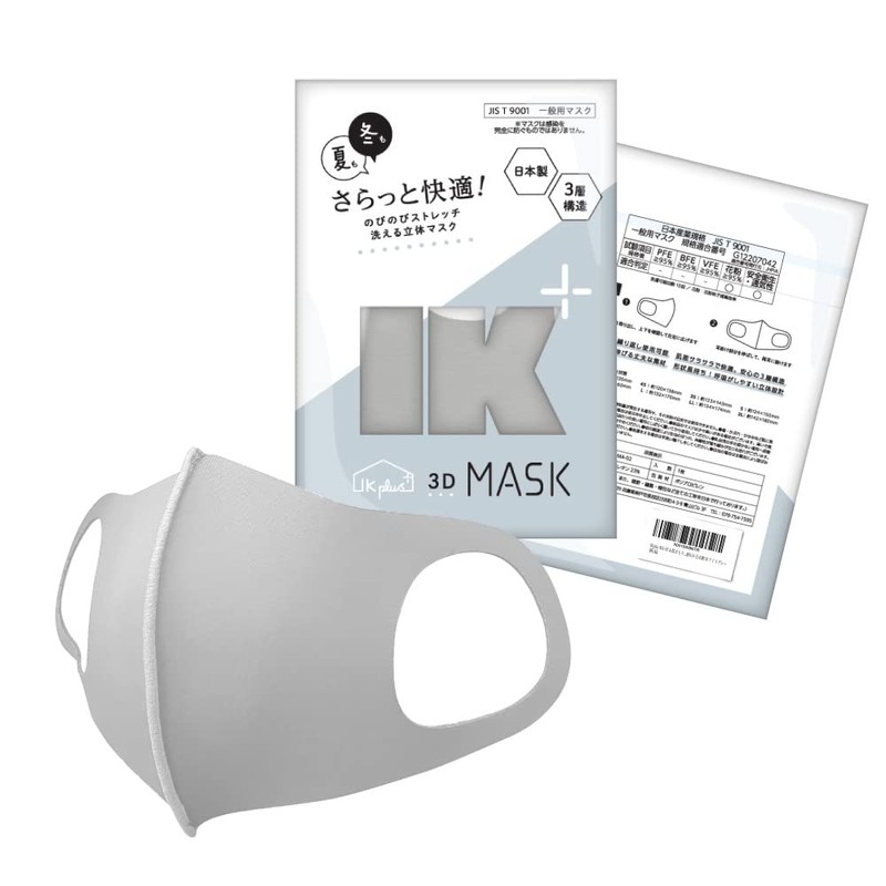 IKEPLUS MA02-JIS UPF 50+ Face Cover, Sun Protection Mask, Ice Gray, L, 3 Piece Set