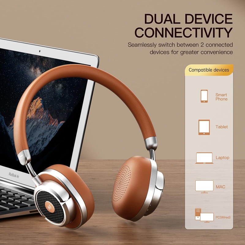 - Luxurious Comfort & Timeless Design: With a metal frame and leather headband, these headphones offer a secure, pressure-free fit. The blend of metal and leather adds sophistication, while the retro-inspired color scheme fuses classic fashion with modern style.