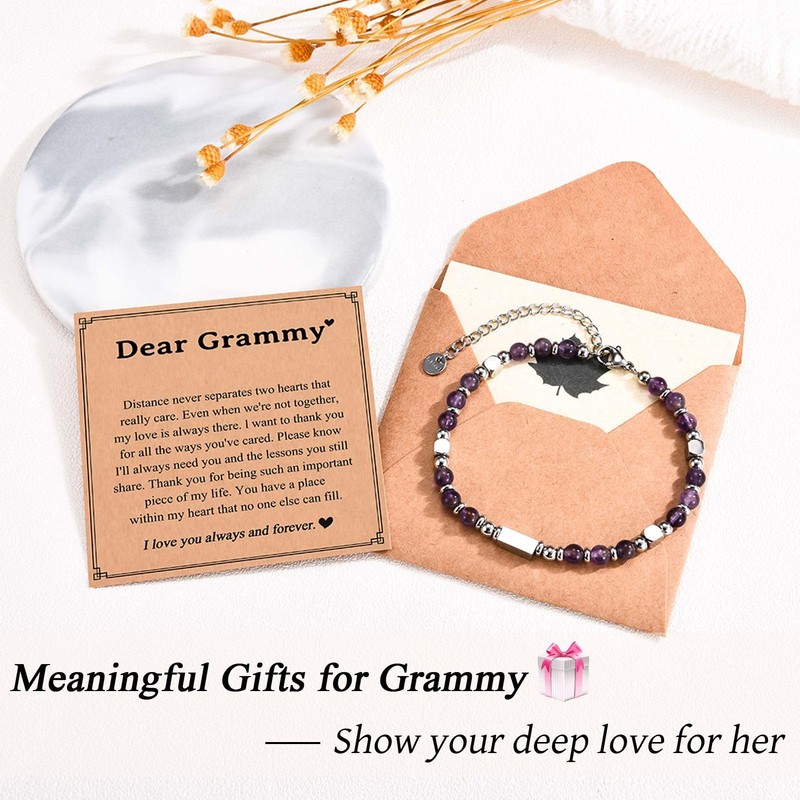 - Grammy Mothers Day Gifts: Amethyst is considered a stone of emotional healing, recovery and protection. This grandma bracelet will bring good luck and heath to your dear grandmother. She will definitely love this special gift.