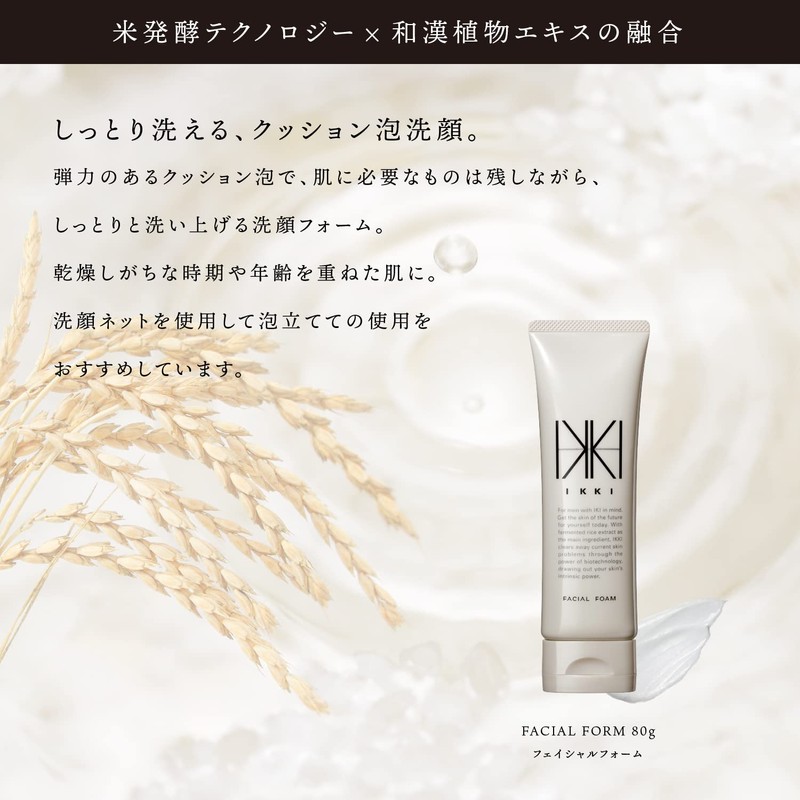 IKKI Facial Foam with Foaming Net Foam, Facial Cleansing Foam, Facial Cleanser, Skin Care, Men's Skin Care, 2.8 oz (80 g)