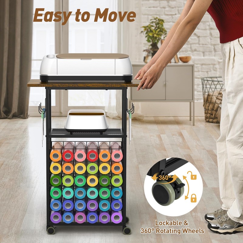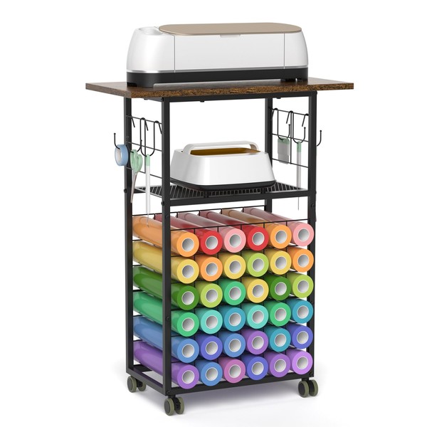 - PERFECT STORAGE SOLUTION FOR CRAFTER: iKKLE rolling craft car is large enough to store all your craft supplies, it has 2 versatile storage shelves for craft machine makers, 36 compartments for vinyl rolls, and can neatly store all your rolls of vinyl.