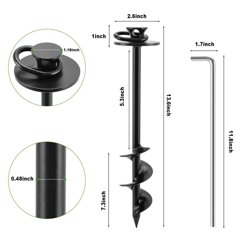 - [Versatility]- Wide range of applications, can also be a heavy duty ground anchor for swing sets, trampolines, dog houses, camping tents, RV awning side covers and more.