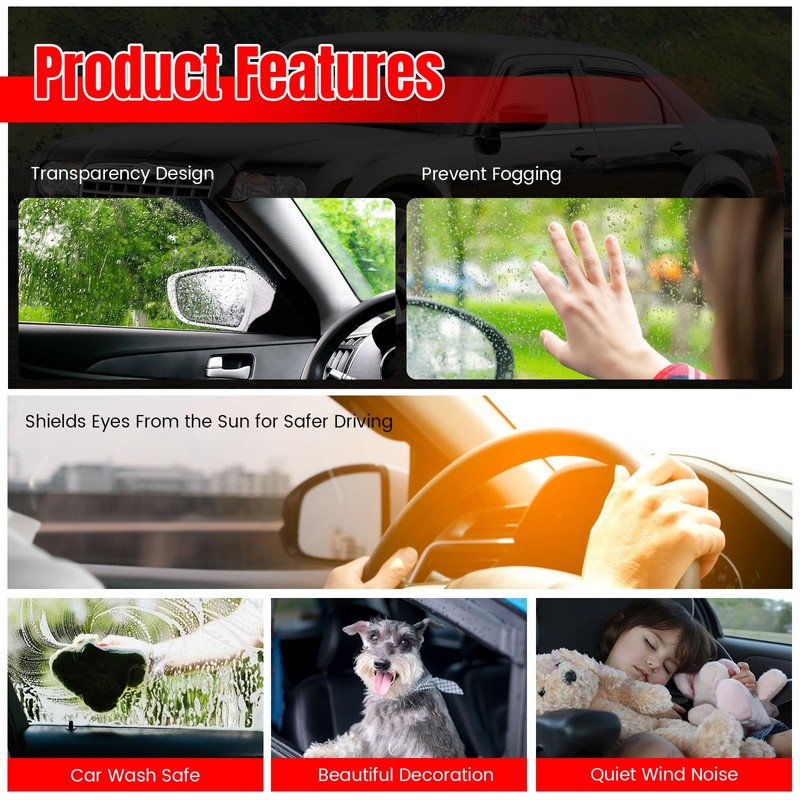 - Why Choose Window Visors? These wind deflectors are engineered to let you crack open your windows for fresh airflow, even during rain, while enhancing your driving comfort. They improve air circulation to reduce interior heat buildup and prevent windshield fogging, ensuring a clearer view and a more enjoyable ride.