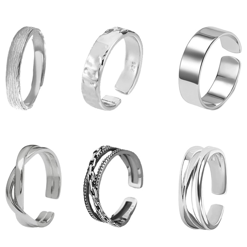 IKOPFLN Set of 6 Rings Stainless Steel Rings Set Silver Matt Polished Knot Vintage Rings Chain Rings Bottle Opener Ring Band Rings Wedding Ring Engagement Rings