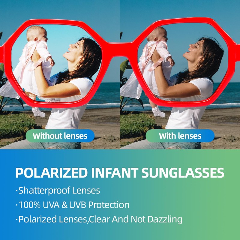 - 【UV400 Gray Protective Lens to Protect Baby's Eyes from Sun Damage】: Polarized sunglasses designed for children to shade and sun protection, using UV400 gray polarized lenses, compared to other lens colors, can effectively block harmful rays and protect baby's eyes, clear and eye-protective. The nose pad adopts an integrated nose pad, which can fit the bridge of the nose well and reduce the burden on the bridge of the nose. The frame adopts high-quality TPEE material, which is shock-resistant, soft, and can be bent without deformation. It is easy to carry and store, and feels light.
