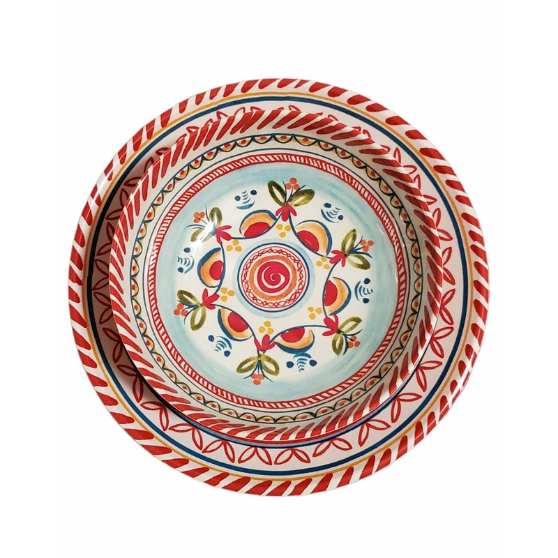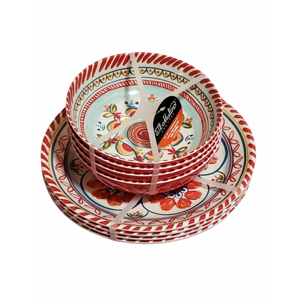 IL Mulino Tuscan Dinner Plates and Salad Bowls Set of Four Each Melamine Dinnerware, Multicolor
