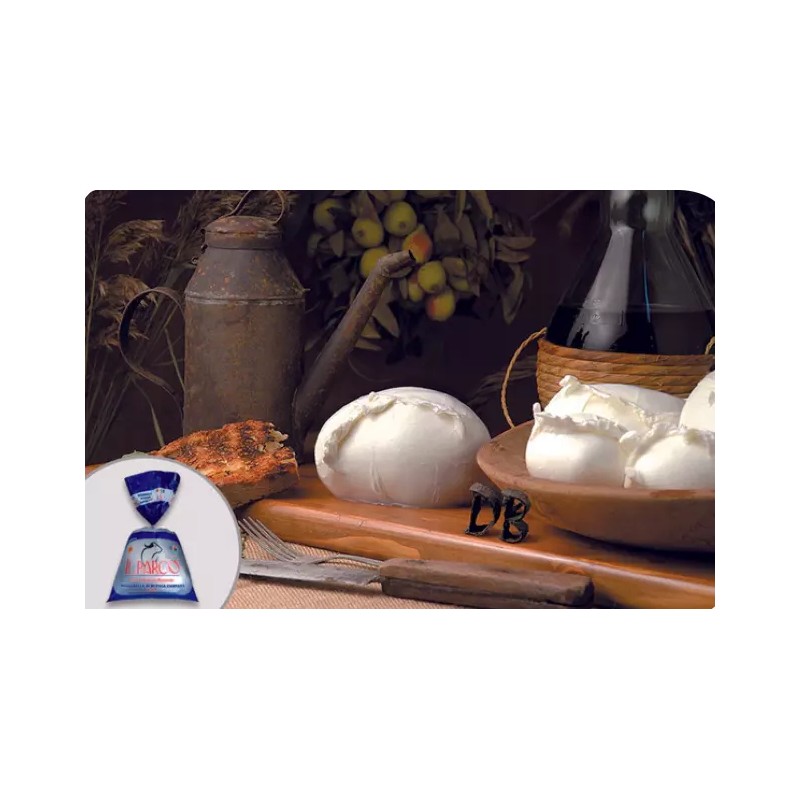Buffalo Mozzarella or Mozzarella di Bufala Il Parco from San Giovanni Rotondo. It has been observed that those cheeses made from buffalo milk are higher in calcium, protein and lower in cholesterol than cow's milk. Mozzarella di bufala is manufactured under strict regulations in areas ranging from Rome in Lazio to Paestum, Campania and a production area near Foggia, Puglia.