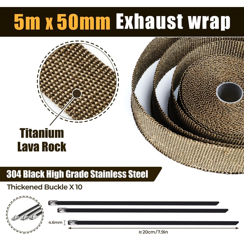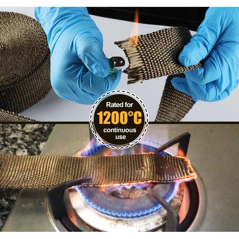 - Extremely high temperature resistance: our heat protection tape exhaust is made of high-quality titanium magma material that can withstand temperatures of up to 1200°C - ideal for high-performance engines and long journeys. Compared to conventional fibreglass materials, it is 25% more stable and durable.