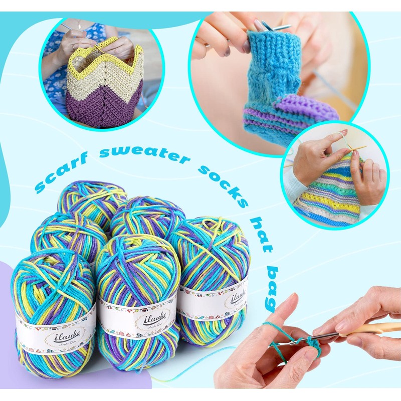 ilauke Knitting Wool Yarn for Crochet (6 X 50g, 4-Ply), Double Knitting Wool Crochet Yarn Balls, Acrylic Yarn with Carrying Bag, Crochet Thread for DIY Knitting Crafts