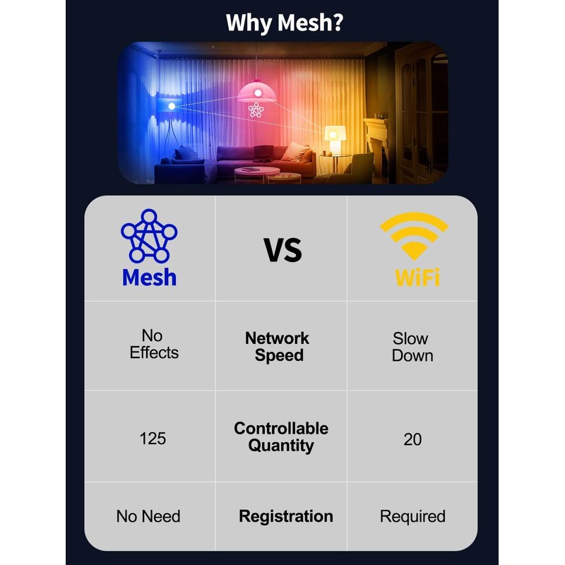 - Bluetooth MESH Technology: ILC smart light bulbs alexa compatible adopts Bluetooth 5.0 chip to realize Bluetooth MESH technology, which makes multi-light control easy, Bluetooth MESH bulbs can forward signals to each other, do not take up the router, stable and not easy to fall off.