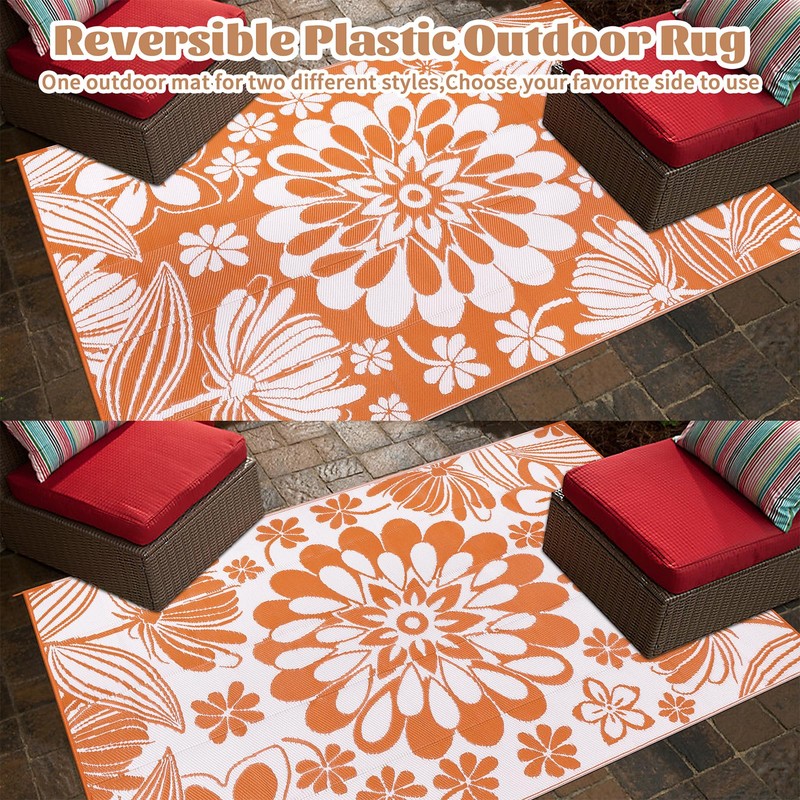 Ileading Outdoor Plastic Straw Rug 9x12ft Funny Floral Style Reversible Patio Area Rugs Waterproof Non Shedding Portable Carpets Large RV Rugs for Outside Deck Pool Beach Picnic Camping (Orange)