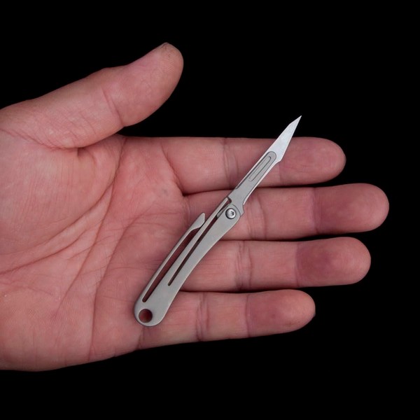- The blade is replaceable. This pocket utility knife uses standard #11 scalpel blades. The box includes 10 extra blades.