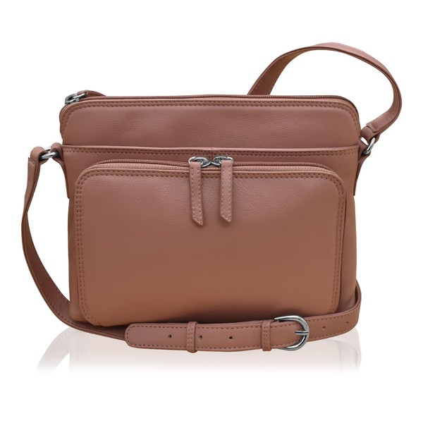 ili New York Genuine Leather Crossbody Bags for Women - Premium RFID Blocking Shoulder Bag Organizer with Adjustable Strap, Mauve, One Size