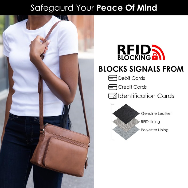 - Multi Functional leather crossbody purses for women: This leather purse with RFID blocking lining protects your personal information while having multiple compartments and an adjustable strap, making it ideal for everyday use