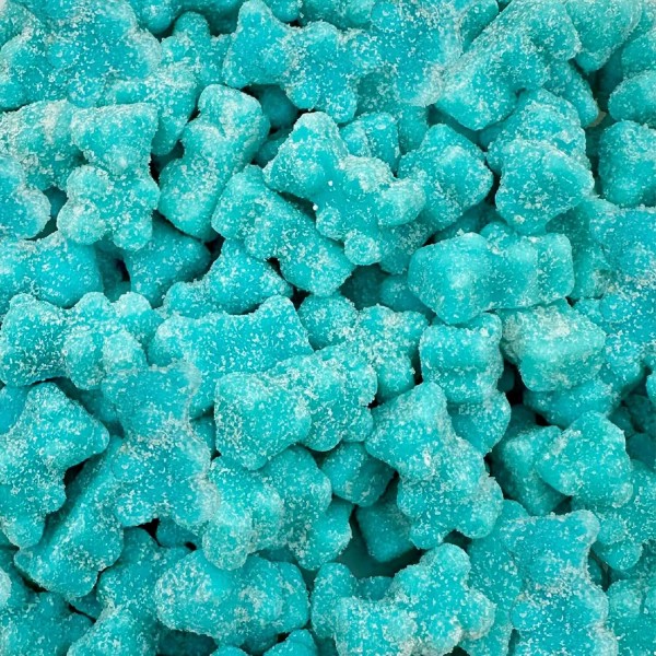 - This bulk bag holds 2 pounds of Gelatin-Free Sour Gummy Bears in Blue Raspberry Flavor (approximately 180 pieces per order)