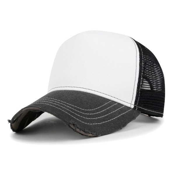ililily Premium Blank Cotton Mesh Back Structured Hat Distressed Baseball Cap, Black&White - Premium, Medium