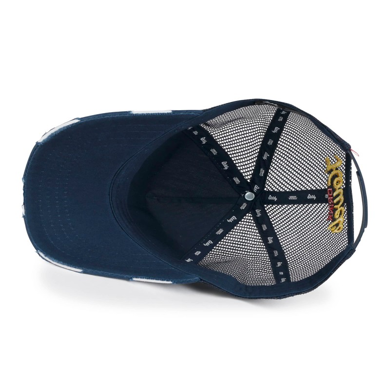 ililily Premium Howels Embroidery Vintage Baseball Cap Distressed Trucker Hat, Navy, Medium