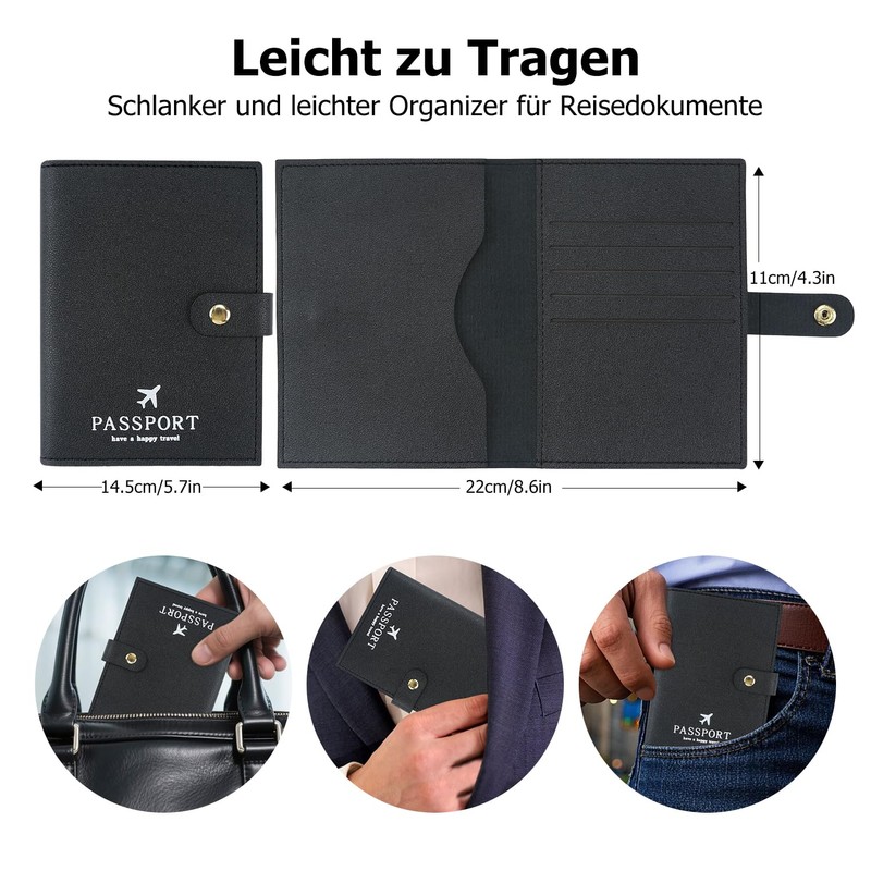 ILIYAH Passport Case Organiser - Passport Bag Travel Document Organiser with Passport Compartment and Card Holder for Travel, black, Casual