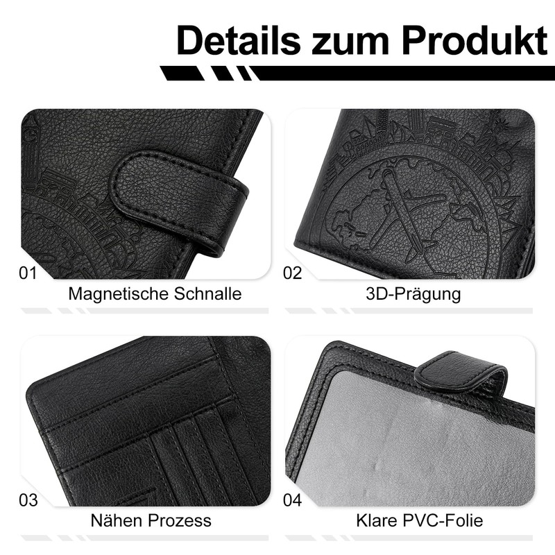 - Premium waterproof PU leather: made of high-quality waterproof PU leather, durable and waterproof, protects your passport and other important documents from water damage and extends the service life.