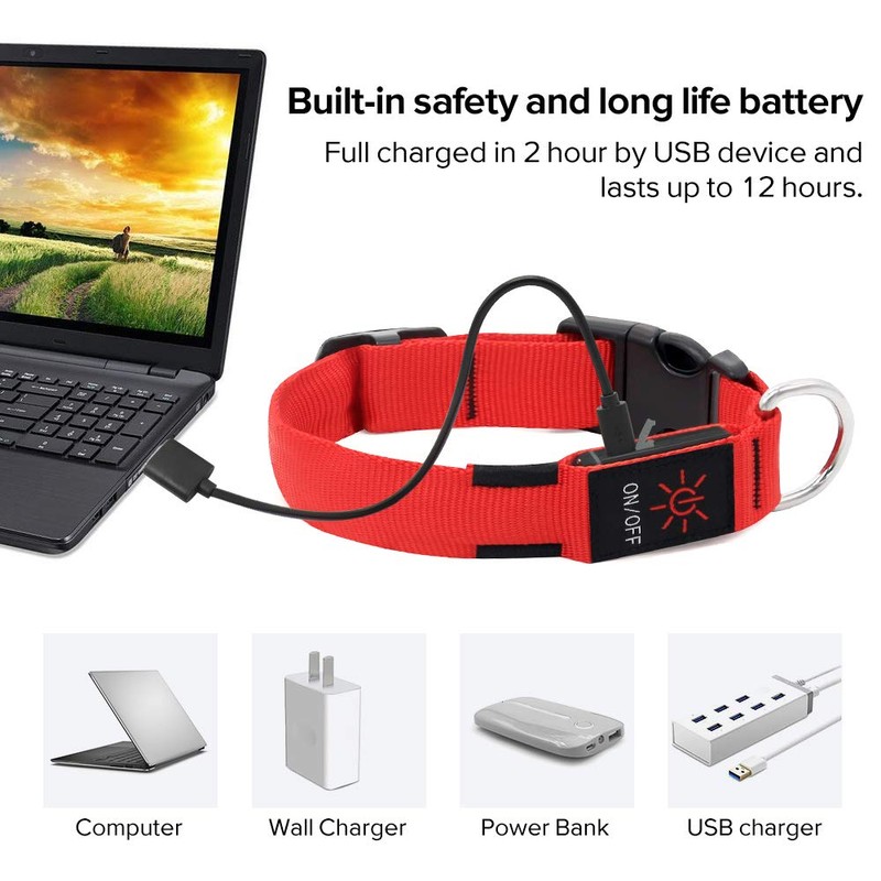 - ★RECHARGEABLE MICRO USB - The LED dog collar can be recharged by Micro USB cable with daily use devices. Charge time: 2 hours. Use 8-10 hours for slow flash, 6-8 hours for quick flash, 2-3 hours for steady glow.