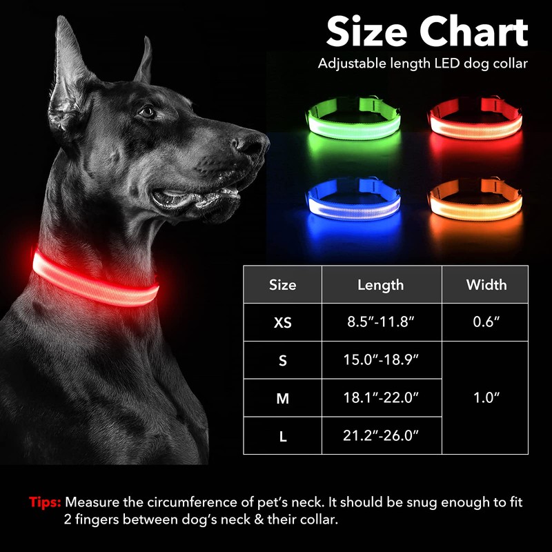 - ★LED SAFETY DOG COLLAR - Illumifun LED dog collar is so bright and easily seen. It’s made of nylon webbing with light guide which improves your dog visibility and safety.