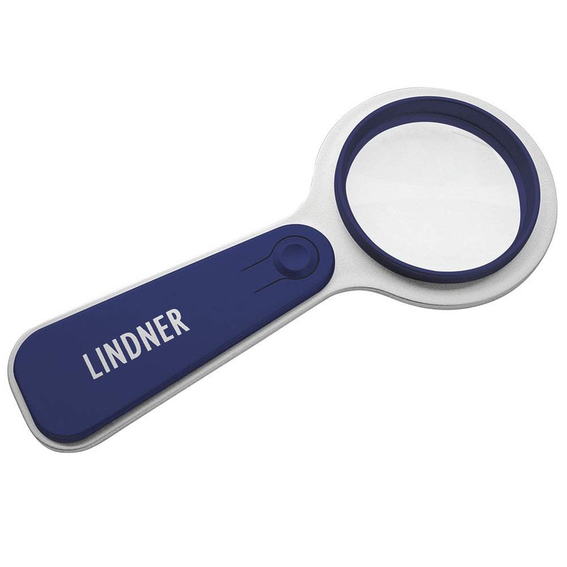 Illuminated LED Magnifier [Lindner S198], 5x magnification, Diameter 50 mm - Color: blue
